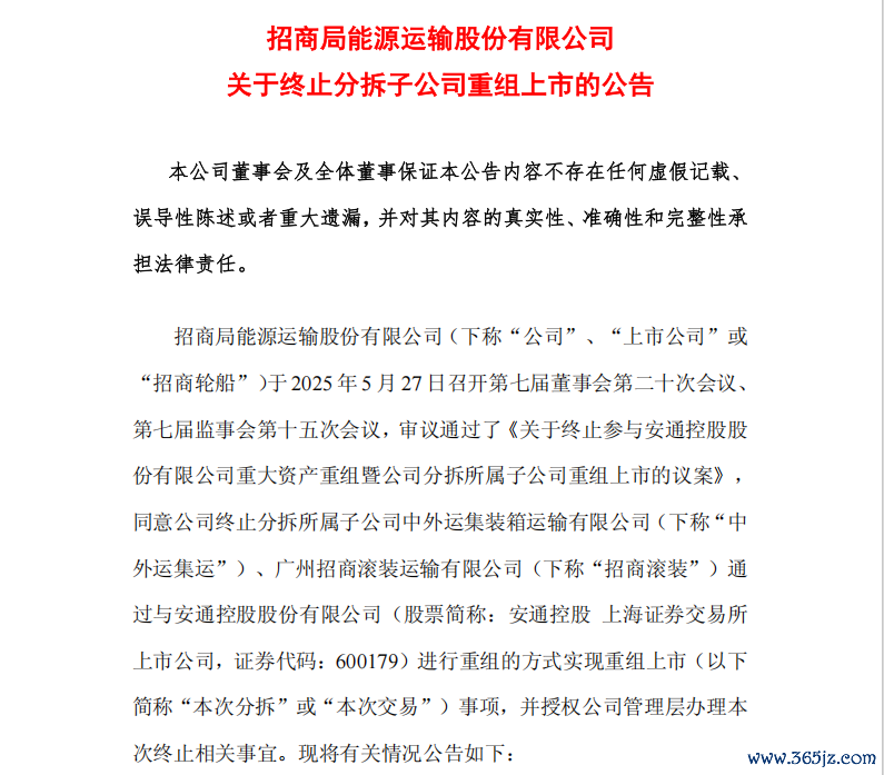 5月27日晚间,招商轮船、安通控股均发布公告称,终止重组上市事项。