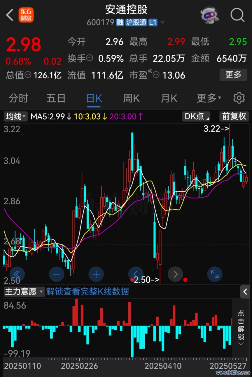 截至5月27日收盘,安通控股股价报2.98元/股,总市值为126.1亿元。