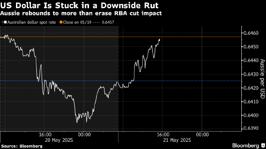 尤其值得注意的是,美元今天下跌,是发生在美债收益率走高的情况下。而澳大利亚国债收益率已回落至美债之下,澳元却依然坚挺。这也凸显了澳大利亚央行指出的一个问题,即特朗普总统的关税政策出人意料地削弱而非提振了美元。澳大利亚央行在昨天的货币政策声明中表示,如果这种趋势持续下去,可能会削弱澳元的“缓冲作用”。通常在避险情绪升温期间,澳元/美元汇率会下跌,从而会帮助放松澳大利亚的金融环境。